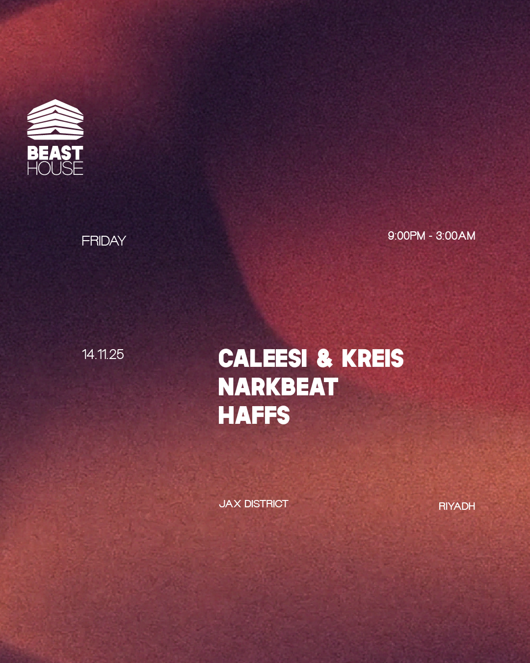 Day 1 lineup: Francis Mercier, Dish Dash B2B RDJ B2B BKR, Pax Arabiana, BRQ.